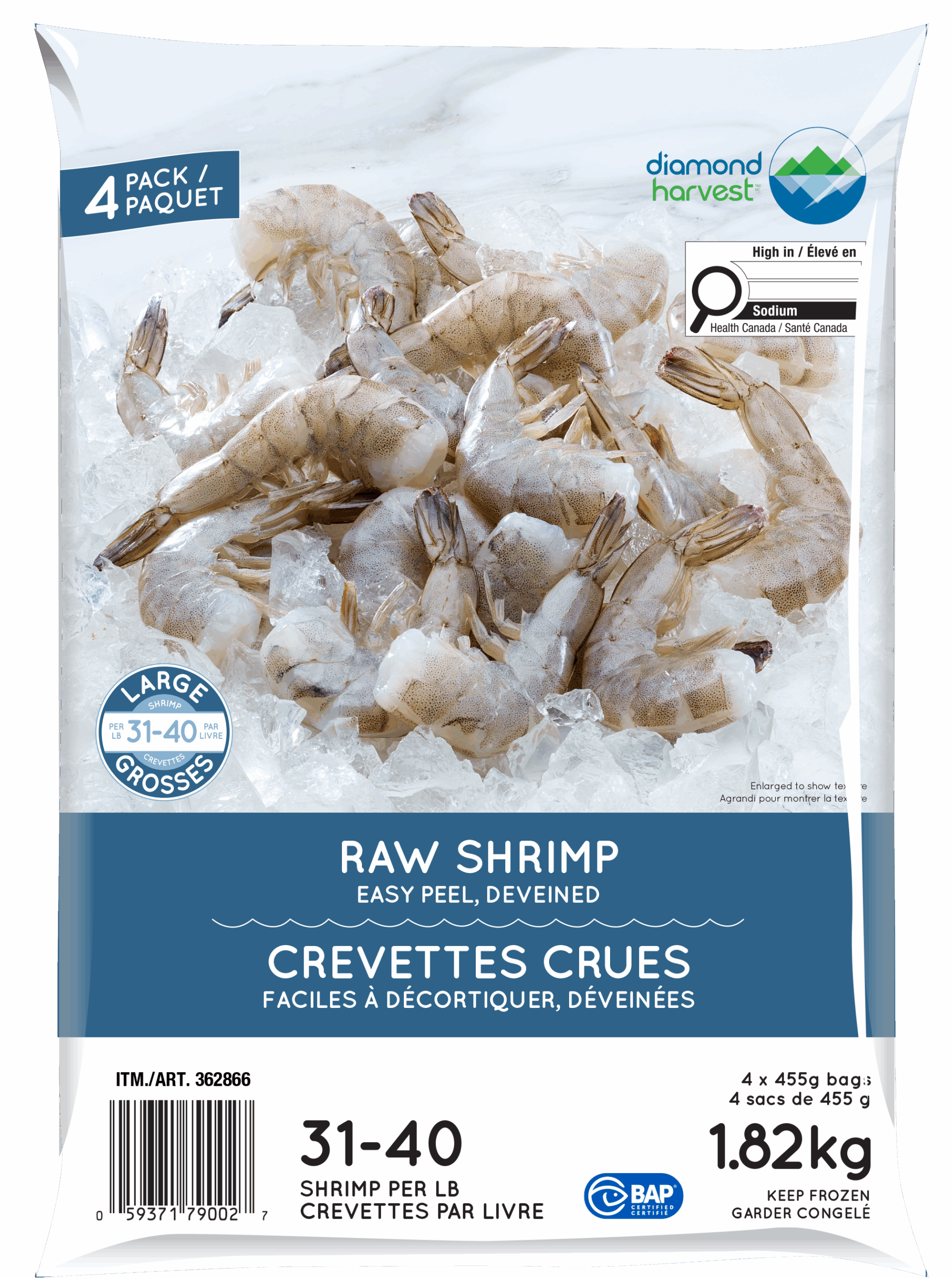 Easy peel, deveined, 4-pack.